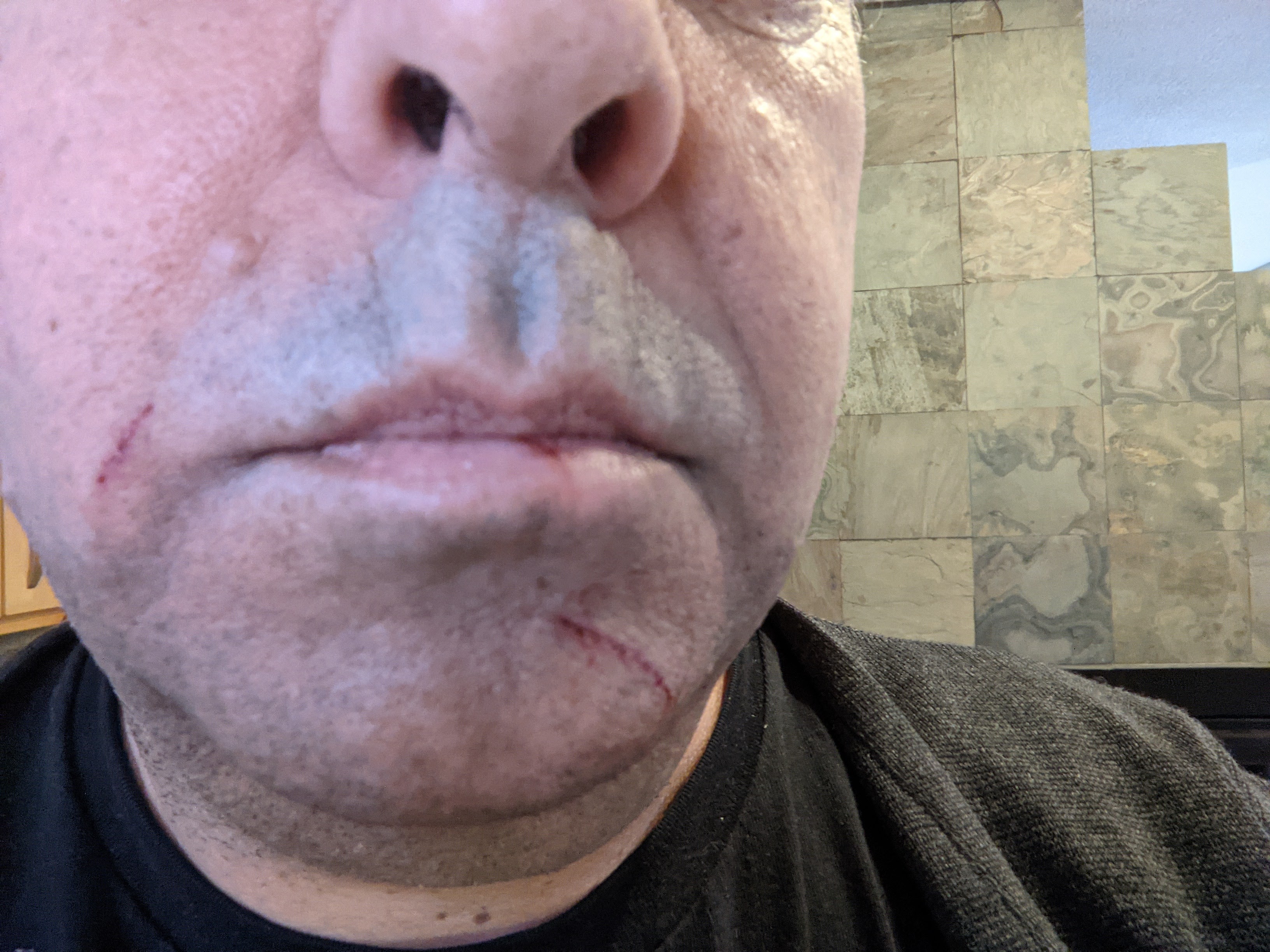 Woke up at 1am with one, possibly three, cats chasing each other across my face. Surprisingly, I knew exactly what was going on. We have three cats that noisily chase each other around in various combinations. I touched my chin and it was definitely bloody. A look in the mirror showed a pretty deep cut on my chin, and some more on my lip and cheek. More blood than I would have thought. Didn’t want to go to an ER so I patched it up with a few band aids and watched some Jaime Oliver reruns on PBS. Doesn’t look too bad this morning. Otherwise, just the usual pandemic life. Picked my tomatoes, started Hanukkah, been cooking a lot, made a big fire in the fire pit. Hung some new solar LED lights on the patio. Turned 58.