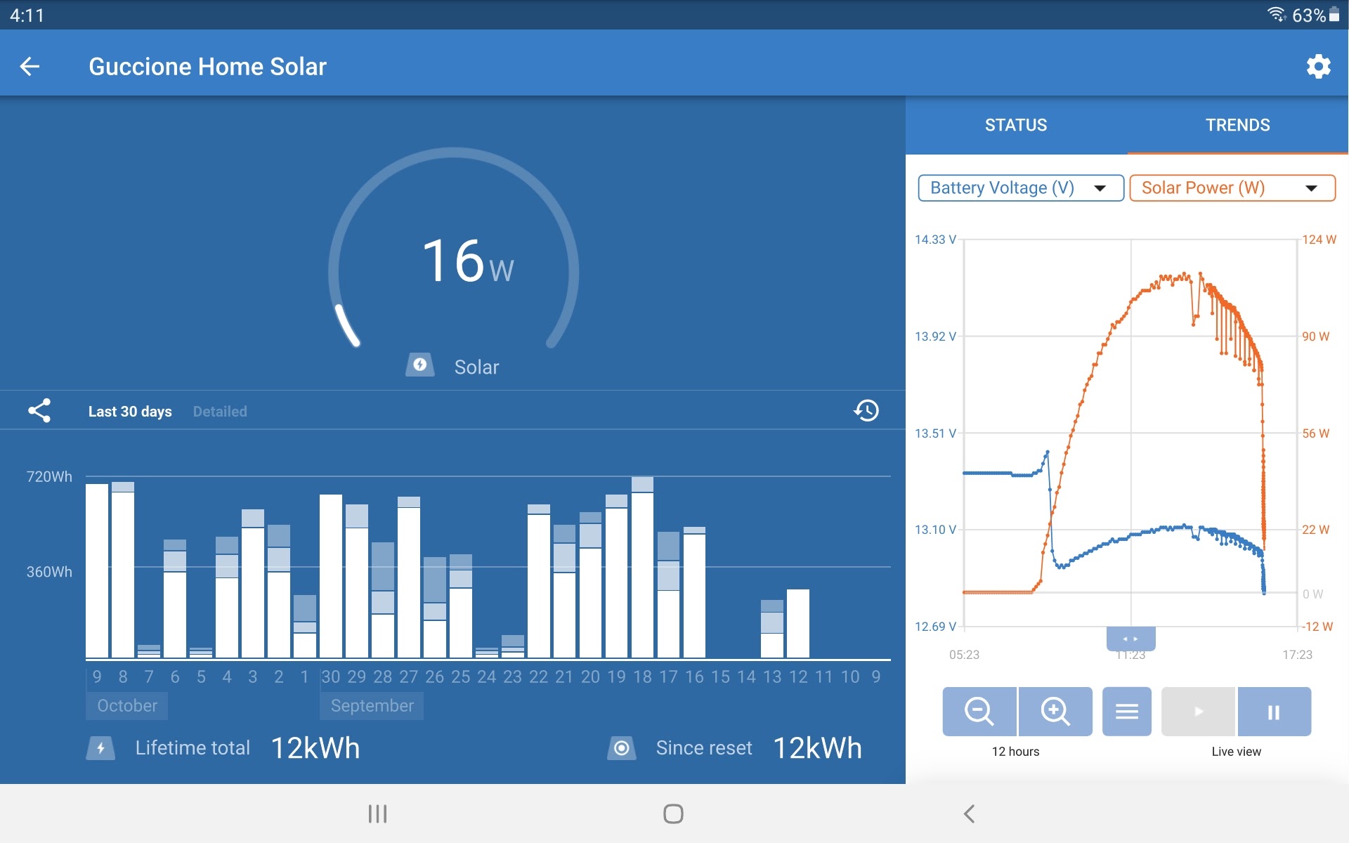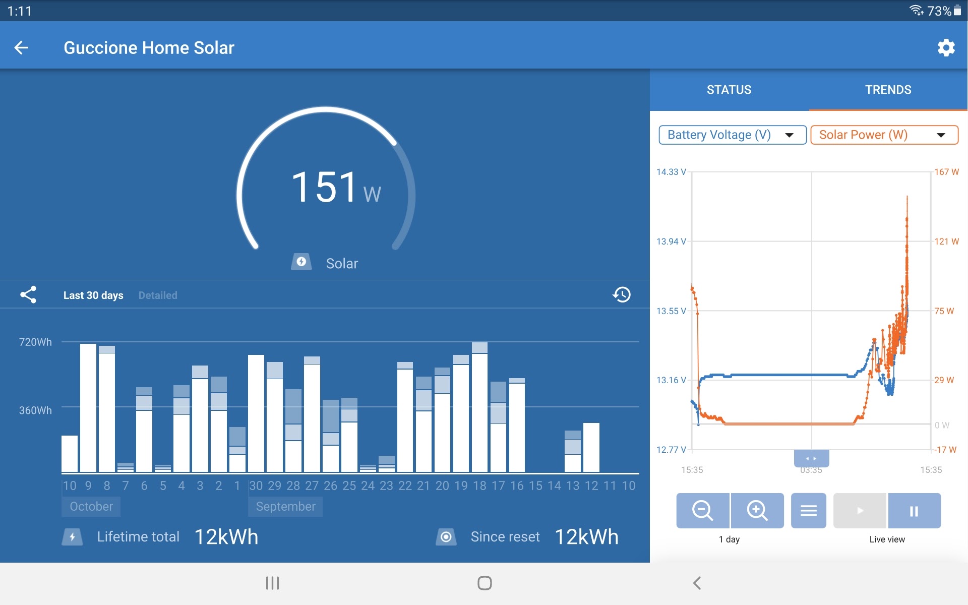 Had a Ring of Fire annular eclipse here today. Found out I can easily make these sorts of graphs and even scroll back several days using the Victron software. Getting hard to make the case for more serious data logging (but I will probably do it anyway). Check out the big drop off around noon today.