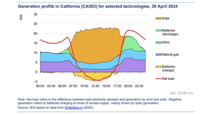 An interesting graph showing how batteries are extending solar power and eliminating the “duck curve”.